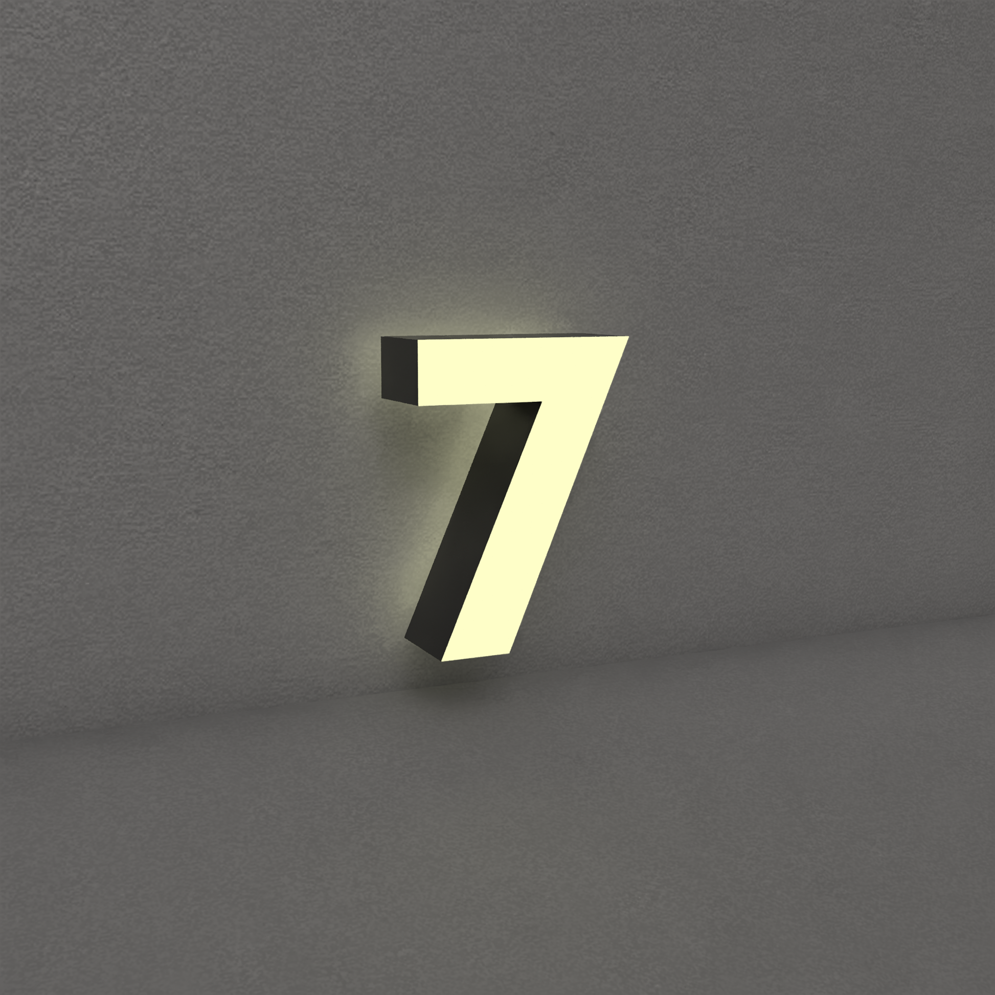 Zur Front hin strahlt das Licht präzise, ruhig und hell – für maximale Sichtbarkeit bei Tag und Nacht. Gleichzeitig erzeugt der rückseitige Lichtaustritt einen zarten Schein auf der Wand, der die Ziffer wie von innen heraus zum Leuchten bringt.